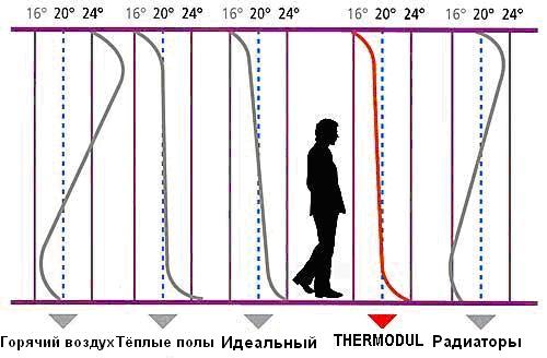 - плинтусное отопление THERMODUL действует главным образом (80-85%), используя излучающие теплa — самое естественное и эффективное распространение тепла